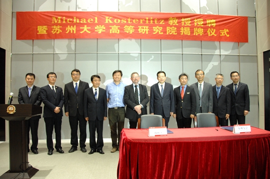实施高端人才汇聚工程,是苏大建设国内一流、国际知名高水平研究型大学的关键所在,也是我校实践“两聚一高”、落实“名城名校融合发展”战略的重要举措。去年底,在师资队伍建设工作会议上,熊思东校长提出“要精准引进人才,着力引进在海内外享有盛誉的战略科学家和具有强大发展潜力的青年才俊。”4月底,熊思东校长专程赴美国拜访迈克尔·科斯特利茨教授,诚邀他加盟苏大。经过充分沟通,迈克尔·科斯特利茨教授欣然答应加盟我校并领衔组建“苏州大学高等研究院”。研究院将按照国际标准进行建设,面向全球招揽优秀人才,重点围绕数学、物理、新材料、新能源、电子信息等领域开展前瞻性、交叉性研究,相关科研成果将服务于产业发展,助推江苏和苏州产业转型升级。在签约受聘后,迈克尔·科斯特利茨表示:“希望苏州大学高等研究院取得巨大成功,产生许多优秀、有趣、伟大的发现和发明。”