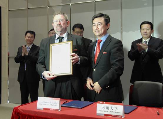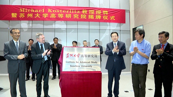 5月21日上午,2016年诺贝尔物理学奖获得者迈克尔·科斯特利茨教授(Michael Kosterlitz)授聘暨苏州大学高等研究院揭牌仪式在我校独墅湖校区举行。