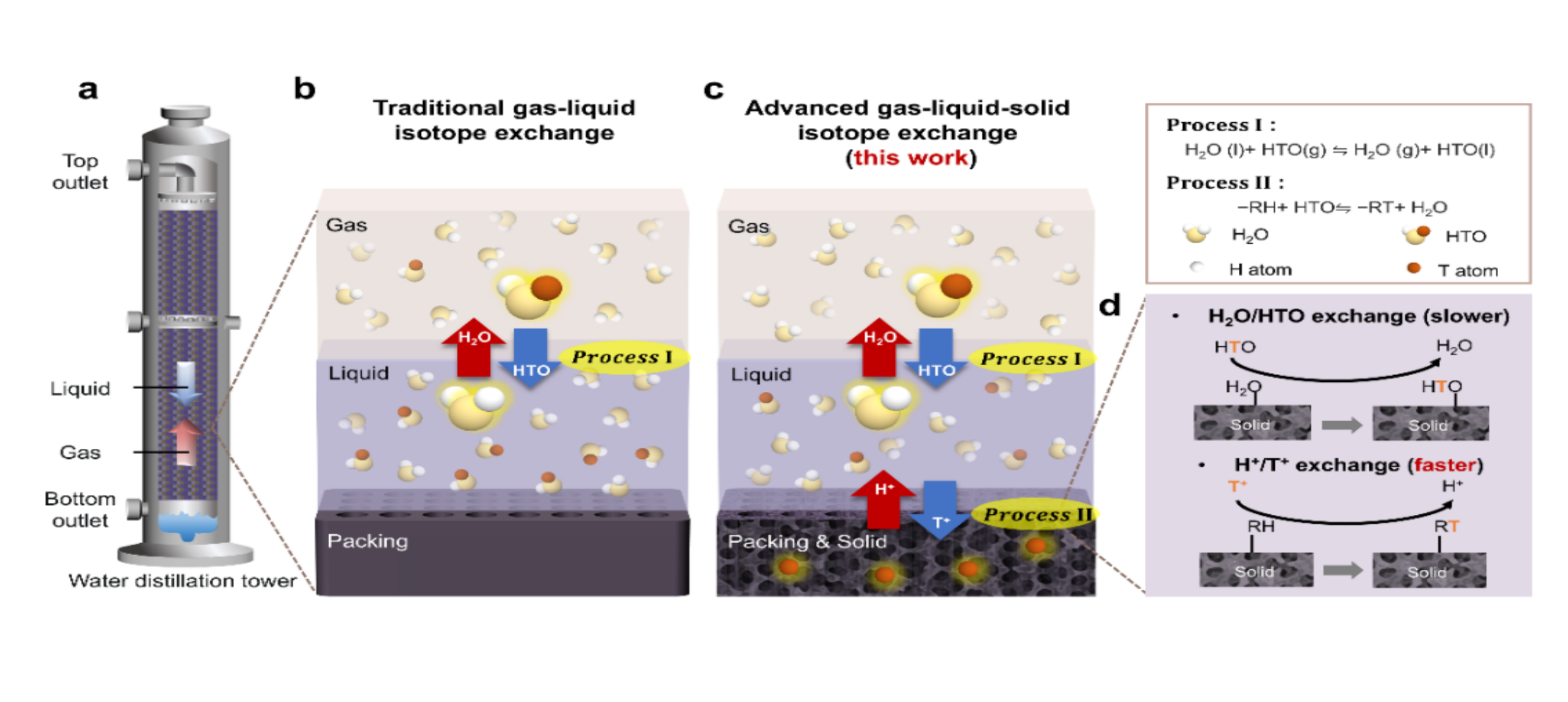 目前,核电正常运行过程产生的含氚废水没有有效技术进行净化。核事故产生的含氚核污染水的高效处理更是核污染控制领域长期存在的技术难题,也是影响核电可持续发展的瓶颈问题。水精馏法被认为是目前最为成熟的含氚废水处理技术之一。然而,由于水与氚之间的沸点差异极小,分离因子极低,因此通常需要显著增加分离级数才能实现有效分离。这导致水精馏氚处理技术的分离效率低、设备成本高、运行能耗大,从而难以实际应用于含氚废水的净化处理。