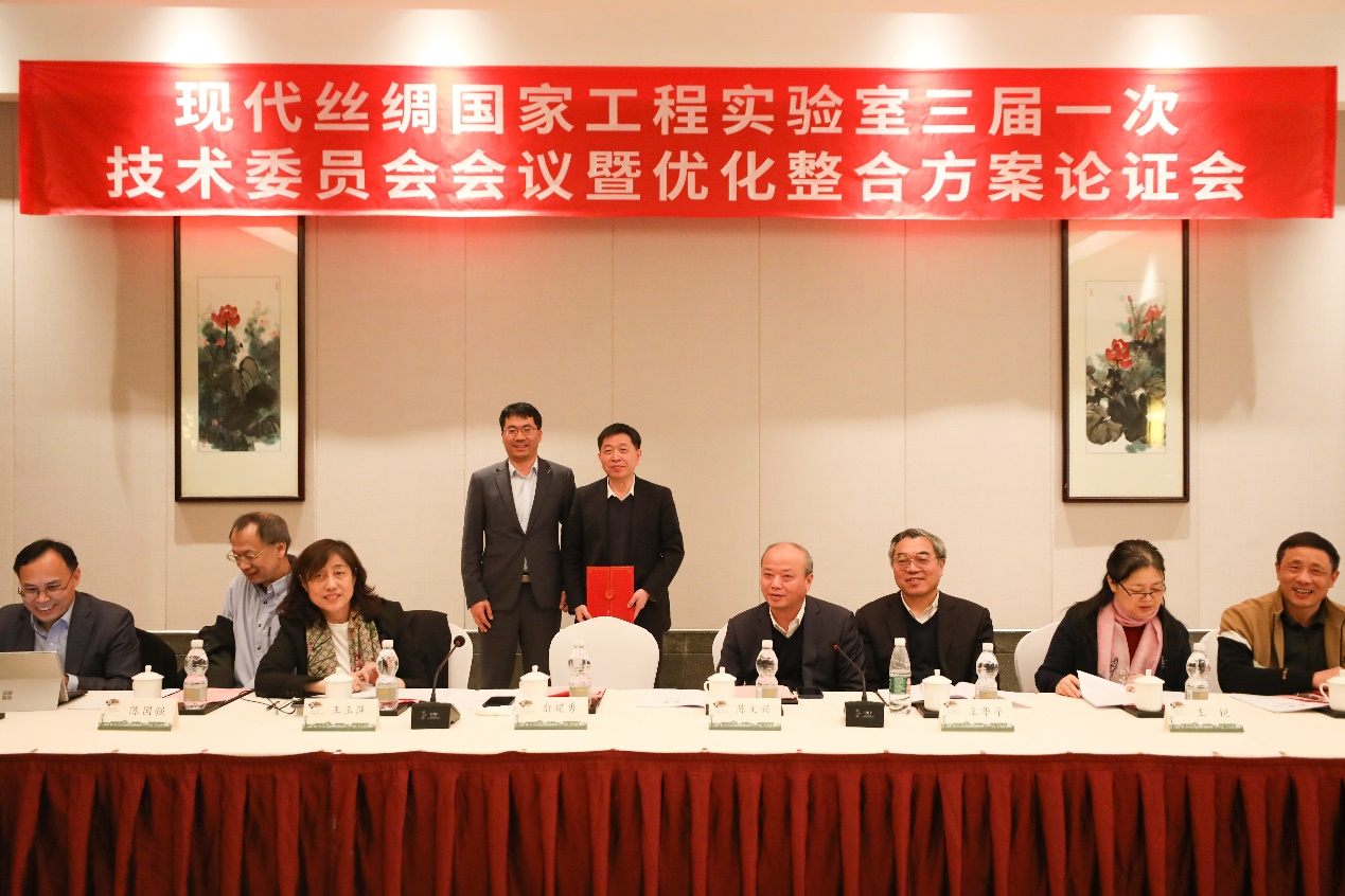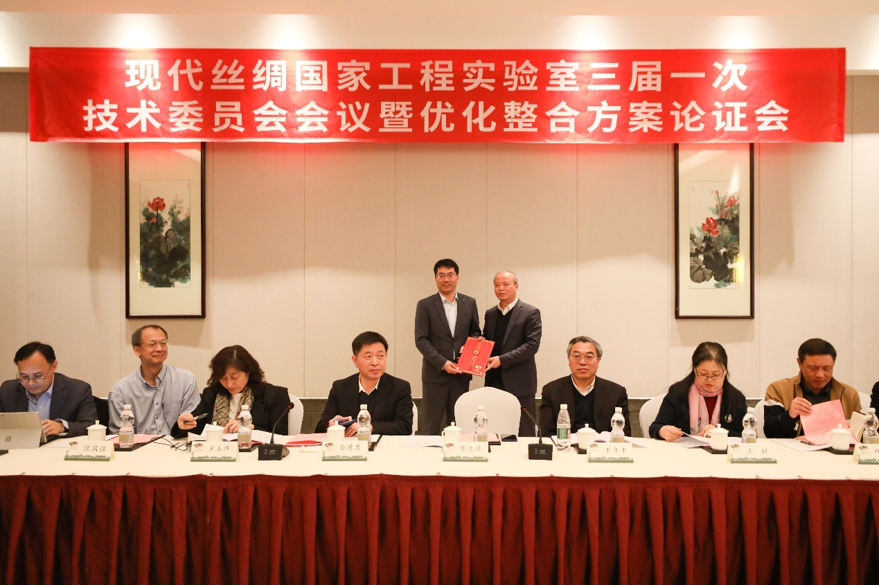 李孝峰宣读现代丝绸国家工程实验室技术委员会委员名单并颁发聘书。纺织与服装工程学院院长张克勤从实验室基本情况、实验室目前优化整合进展、实验室优化整合过程中存在的不足,以及下一步工作思路等几个方面进行了情况介绍。