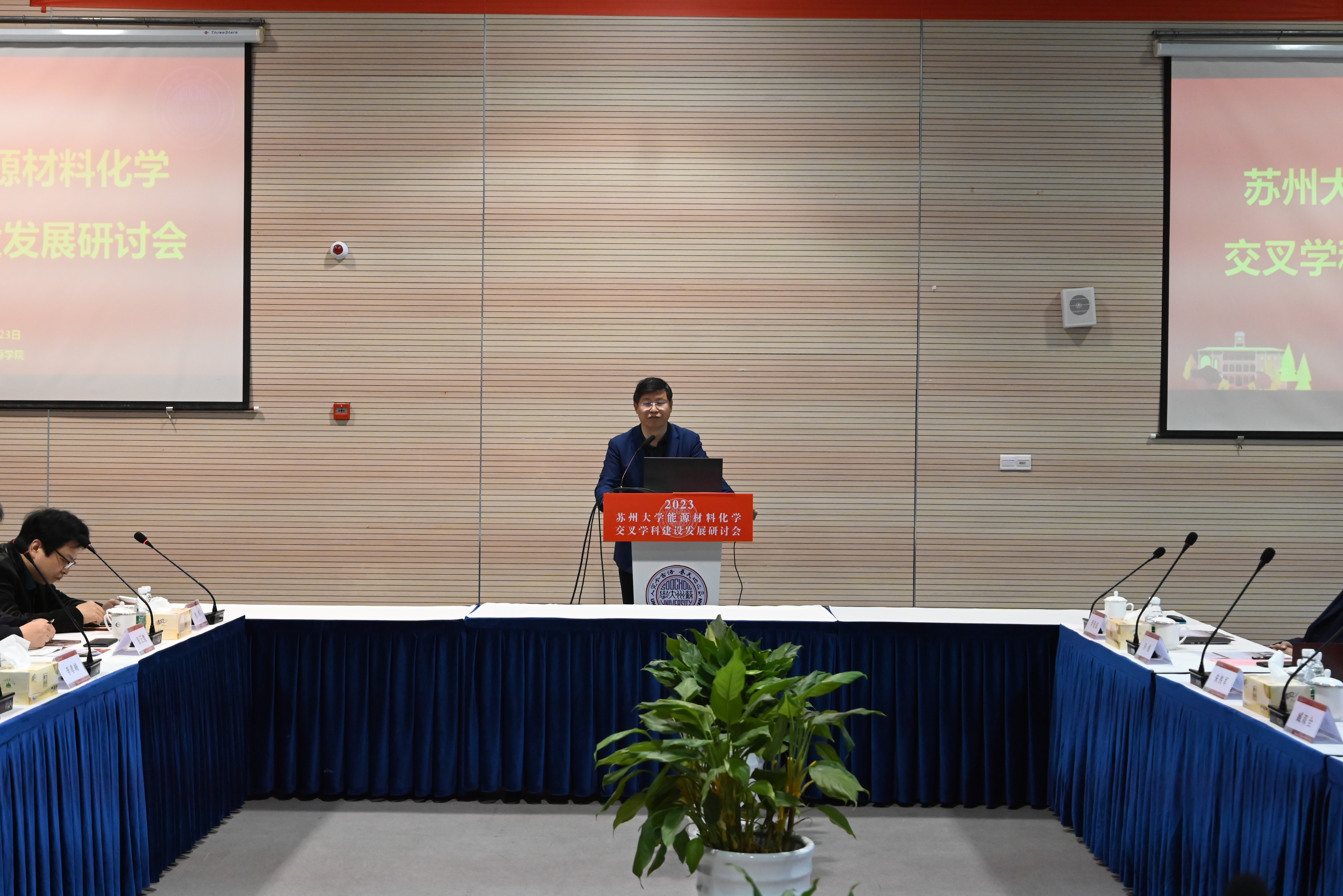 4月23日上午,2023苏州大学能源材料化学交叉学科建设发展研讨会在能源学院召开。中国科学院院士、苏州大学能源与创新研究院院长刘忠范,苏州市科协主席路建美,我校副校长李孝峰,郑州大学副校长臧双全,北京大学材料学院院长邹如强,浙江大学材料学院院长朱铁军,北京航空航天大学化学与环境学院院长刘明杰,同济大学材料学院院长许维,西安交通大学化学学院院长丁书江,华北电力大学新能源学院院长李美成,北京科技大学材料学院院长廖庆亮,中南大学化学化工学院副院长纪效波,南京师范大学化科院院长唐亚文,长春工业大学化学与生命科学学院院长王哲,我校科研院党委书记蒋敬东,材料与化学化工学部主任张正彪,能源学院院长晏成林,材料与化学化工学部副主任李华,能源学院副院长彭扬、王海波、包军以及能源学院部分负责人出席大会。会议开幕式由晏成林主持。
