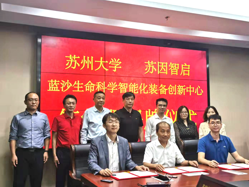 团队主要研发成员陈涛教授介绍,该设备是我校“蓝沙生命科学智能化装备创新中心”平台的转化成果,2020年苏州大学与上海蓝沙生物科技有限公司、苏州苏因智启生物科技有限公司合作共建了校企创新平台,致力于研究全自动核酸检测样品的处理工艺,并研制智能化设备,助力企业持续提升核酸检测水平和效率,为我国抗击疫情的攻坚战作出贡献。苏州大学相城机器人与智能装备研究院将继续为企业提供技术、人才等支持,提供各项产学研专业服务,促进科技成果转化及孵化,助力企业高质量发展。