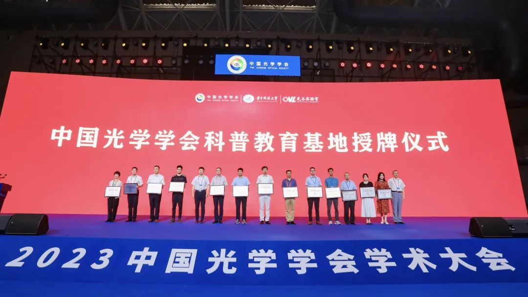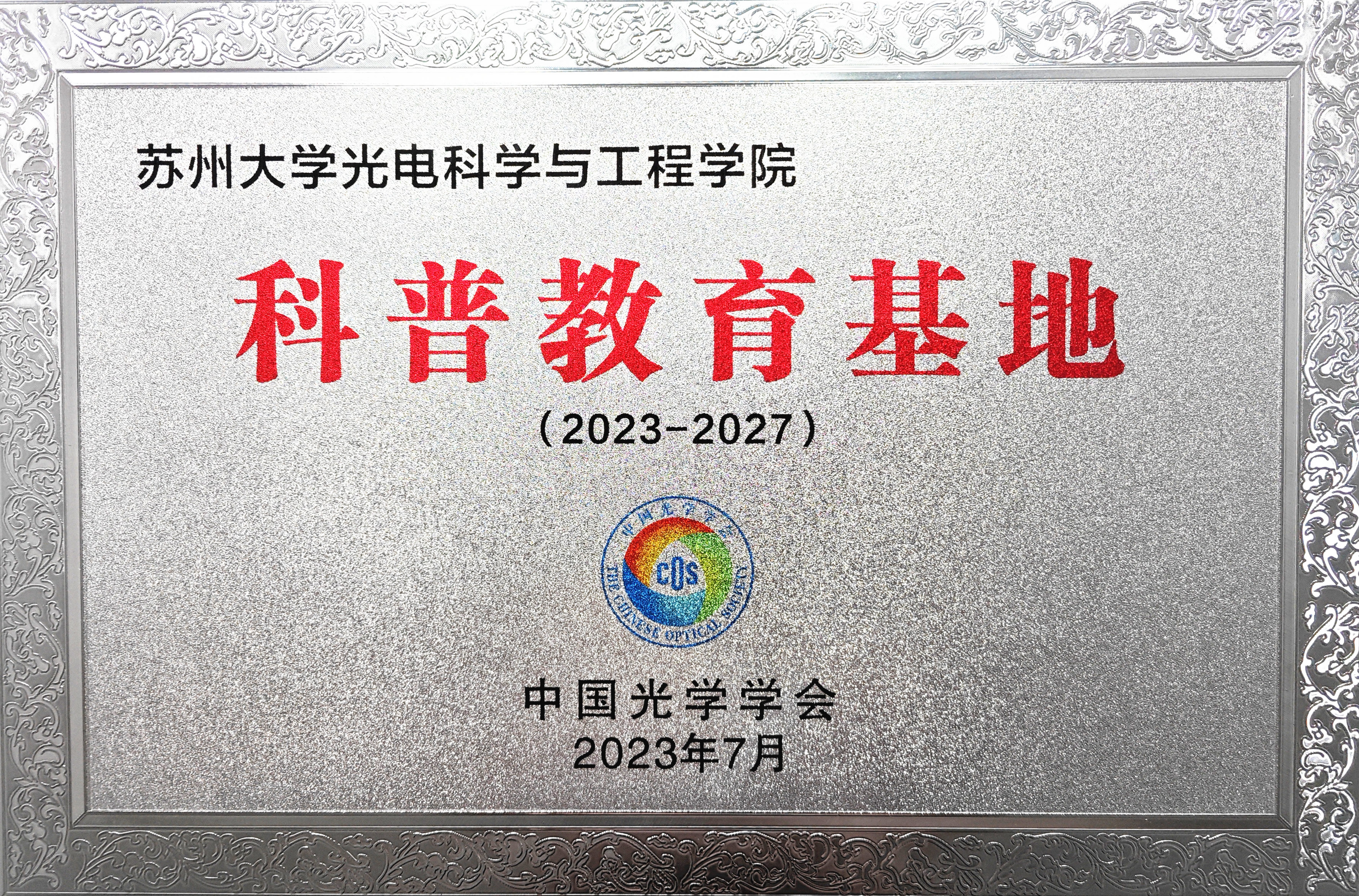 为贯彻落实《全民科学素质行动规划纲要(2021-2035年)》,充分发掘和合理利用光学学科科普教育资源,促进公众对光学科学及技术的理解、认识及应用,中国光学学会启动了2023年度首批中国光学学会科普教育基地认定工作。经各单位推荐和专家评审,我校光电科学与工程学院成功入选,成为中国光学学会首批科普教育基地13家建设单位之一。这是光电科学与工程学院继2022年入选苏州市科学家精神教育基地之后的又一殊荣。7月29日,中国光学学会学术大会开幕式上举行了中国光学学会科普教育基地授牌仪式。