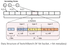 论文的研究工作历时近2年,由苏州大学和南京大学师生共同合作完成。论文所研究的大流检测(Heavy-Hitter Detection)问题是高速网络数据流处理的核心任务之一,目的是检测并报告数据流中出现频率最高的若干条大流。该问题在网络攻击检测、数据库查询优化和舆情分析等领域有着广泛应用。论文提出了一种名为SwitchSketch的新型大流检测技术,通过对数据流中的每个元素执行时间复杂度为O(1)的实时更新操作,能够实时提取元素信息并维护大流列表,且仅使用极小的片上缓存空间(例如200KB)从海量高速数据流中准确捕捉大流,同时满足高吞吐量和高精度检测的实际业务需求。该研究还提出了一系列巧妙的机制,包括基于编码的可变换桶结构、多级变长存储槽、嵌入式编码和计数器压缩等,首次解决了由于数据流的动态特性而导致的检测性能受影响或需要降低系统效率和灵活性的两难困境。基于真实网络流量数据集(CAIDA)的实验结果展示,在保证处理性能的前提下,SwitchSketch相较于之前最优解决方案,将估计误差减少了30.77%到99.96%,且兼容主流软件平台(CPU)和硬件平台(FPGA),具有广阔的应用前景。匿名评审专家对论文的内容给予高度认可,其中一位评审专家给出了“The achieved improvements over existing work are impressive.”的评价。