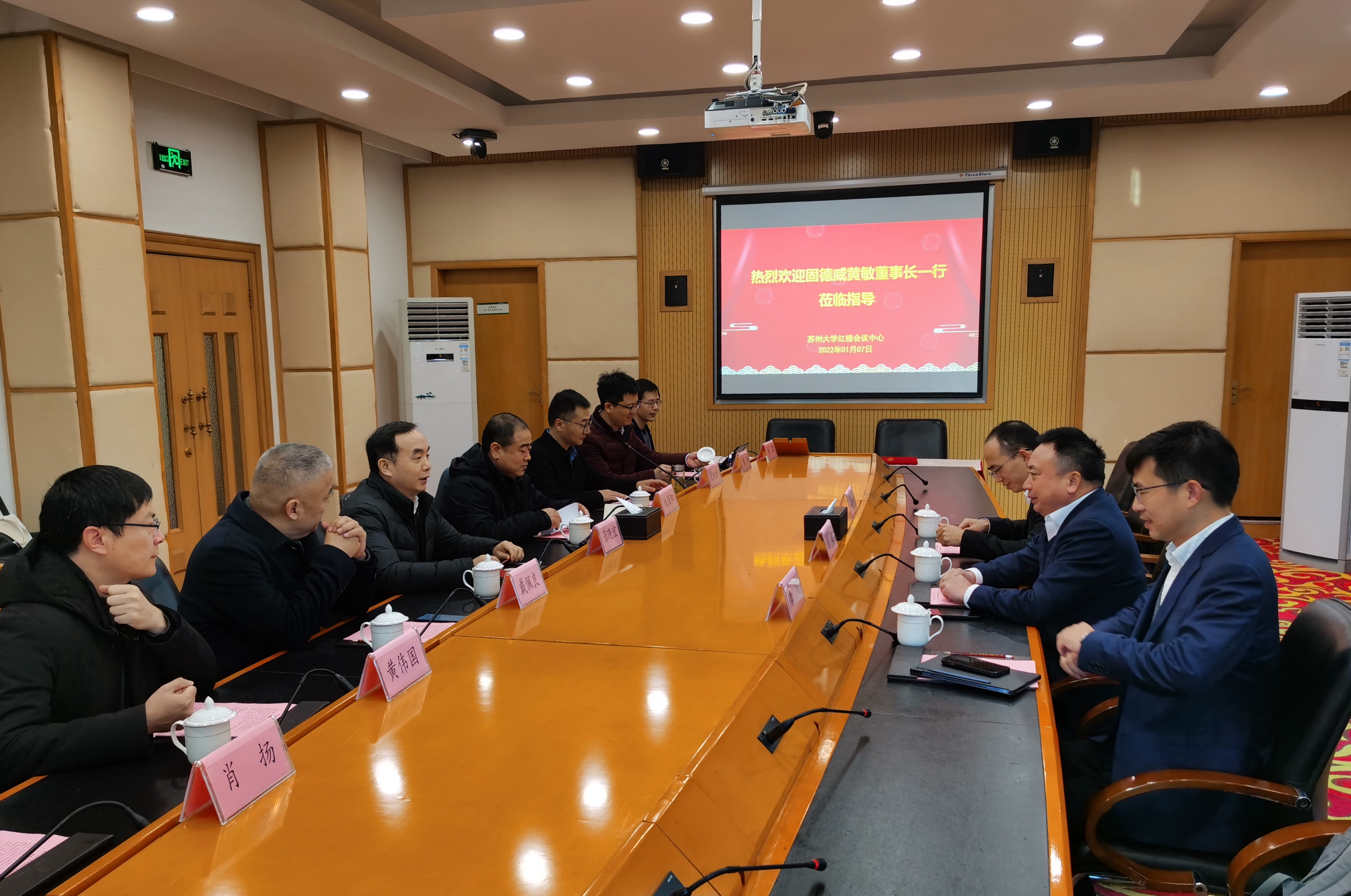 张晓宏副校长对黄敏董事长一行的到来表示热烈欢迎,对固德威多年来对学校的关心支持表示感谢,并简要介绍了苏州大学的改革发展情况。他表示,固德威作为光伏领域的世界知名企业,技术力量雄厚,苏州大学学科门类齐全,双方合作积极响应国家“双碳”战略,希望继续发挥各自优势与特色,促进创新资源共享、创新平台共建,进一步加强双方在人才培养、科学研究、社会服务等方面的深度合作,推动企业和学校共同发展。