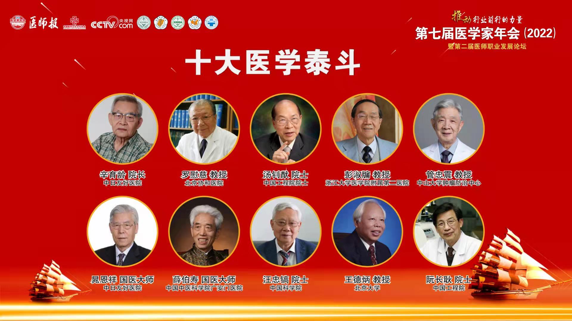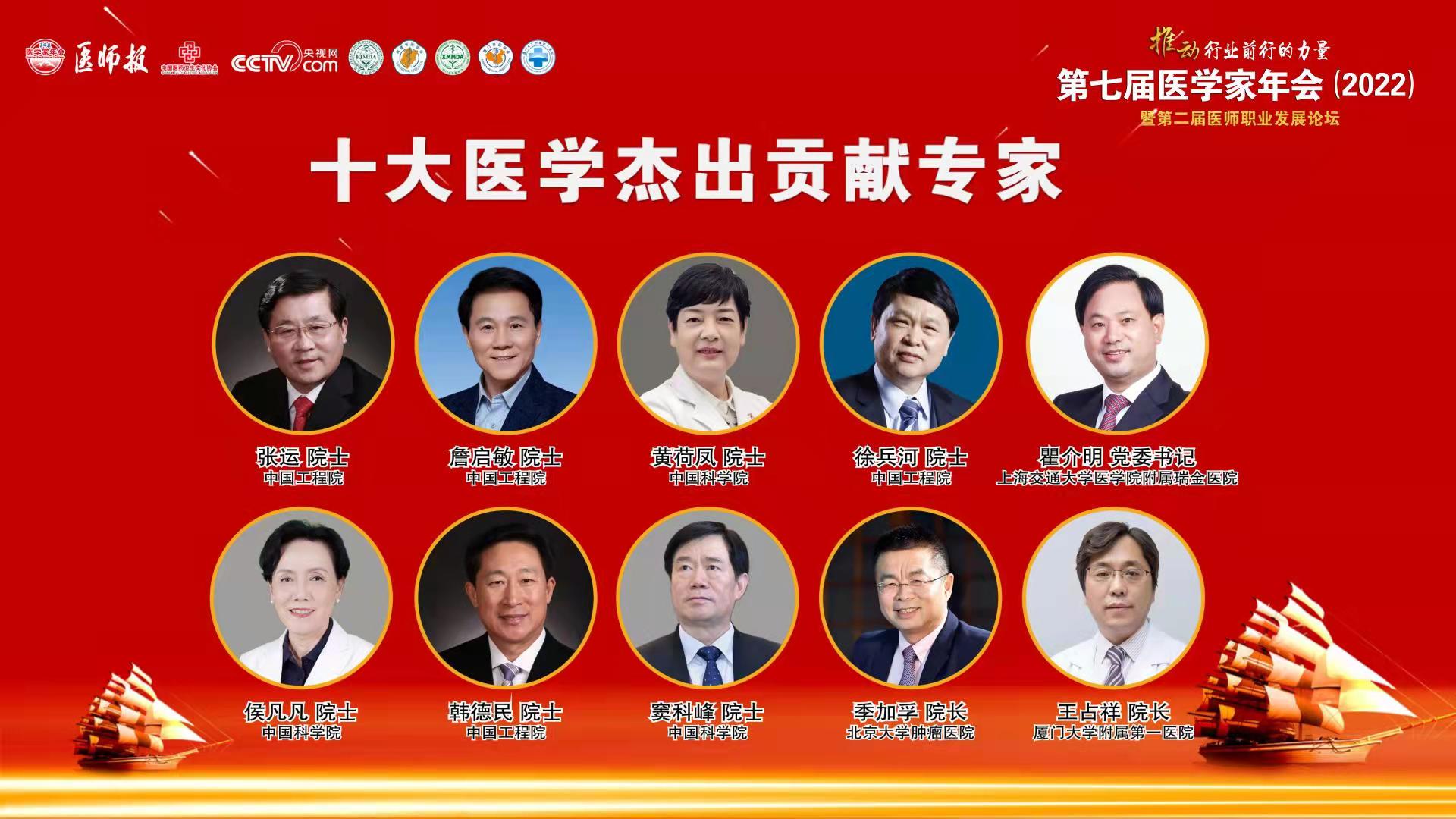 3月18日,由医师报社、中国医药卫生文化协会、央视网、福建省医师协会、福建省医学会、厦门市医师协会、厦门市医学会、厦门大学附属第一医院等主办的第七届医学家年会(2022)暨第二届医师职业发展论坛隆重召开。大会对医疗领域作出突出贡献的专家、学者给予表彰,我校阮长耿院士荣获“十大医学泰斗”称号,詹启敏院士荣获“十大医学杰出贡献专家”称号。