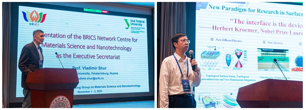 随后,俄罗斯方Vladimir Shur教授和中方陈懿尧副研究员分别就“金砖国家材料科学与纳米技术网络中心”和“纳米真空互联实验站(Nano-X)”作大会主题报告。主题报告由我校国际合作交流处副处长资虹主持。