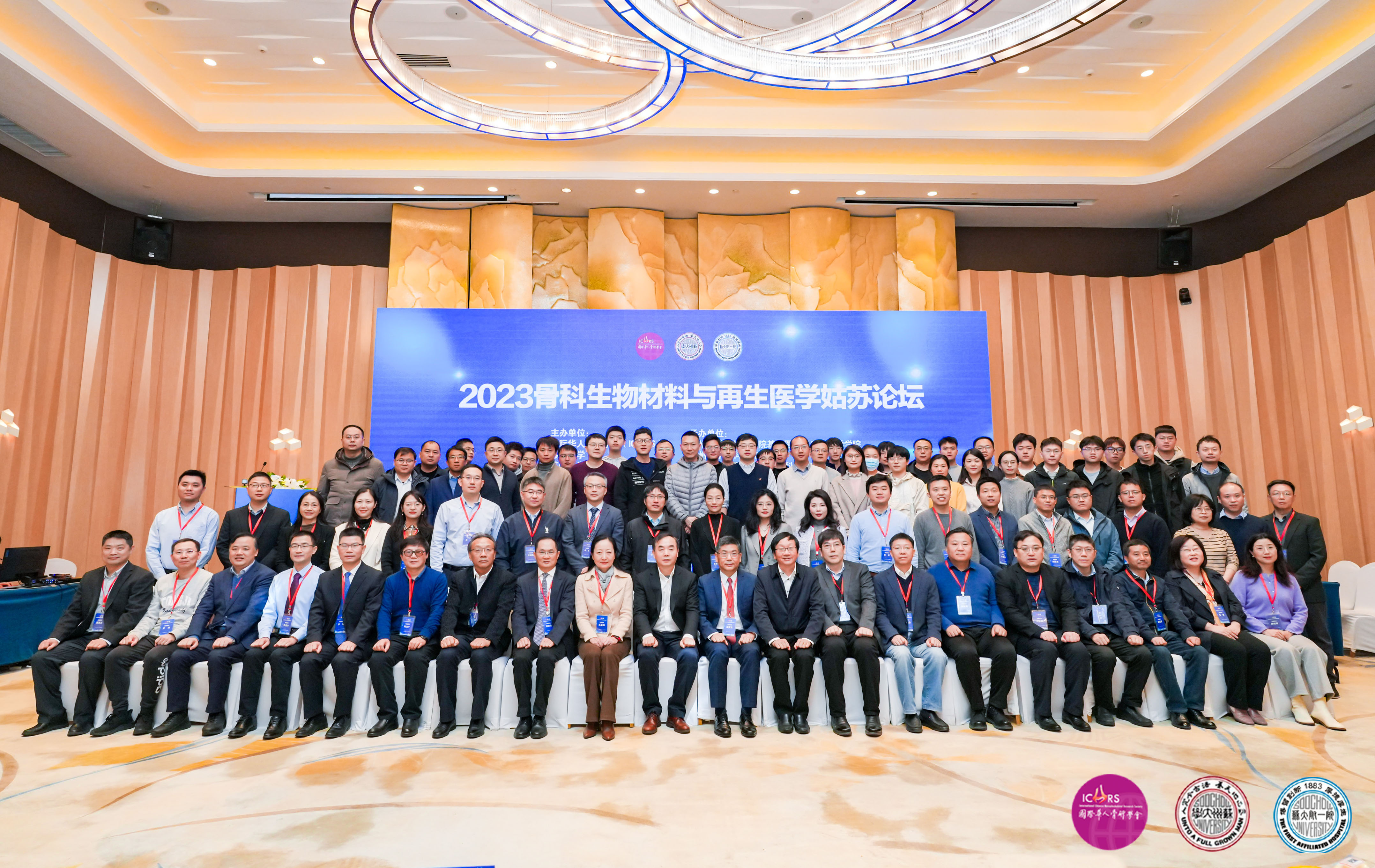 12月2日至4日,2023骨科生物材料与再生医学姑苏论坛在苏州举办。本次论坛由国际华人骨研学会(ICMRS)、苏州大学和苏州大学附属第一医院共同主办,苏州大学苏州医学院基础医学与生物科学学院,我校骨科研究所与附属第一医院骨科-ICMRS 转化医学联合研究中心及医学3D打印中心承办。国际华人骨研学会主席、本次论坛主席、南方科技大学医学院副院长肖国芝,我校党委书记张晓宏,副校长吴嘉炜出席开幕式。苏州医学院执行院长徐广银,附属第一医院党委书记、院长刘济生,苏州医学院基础医学与生物科学学院院长李斌、党委书记王建凯以及学校相关职能部门负责人等参加开幕式。开幕式由李斌主持。