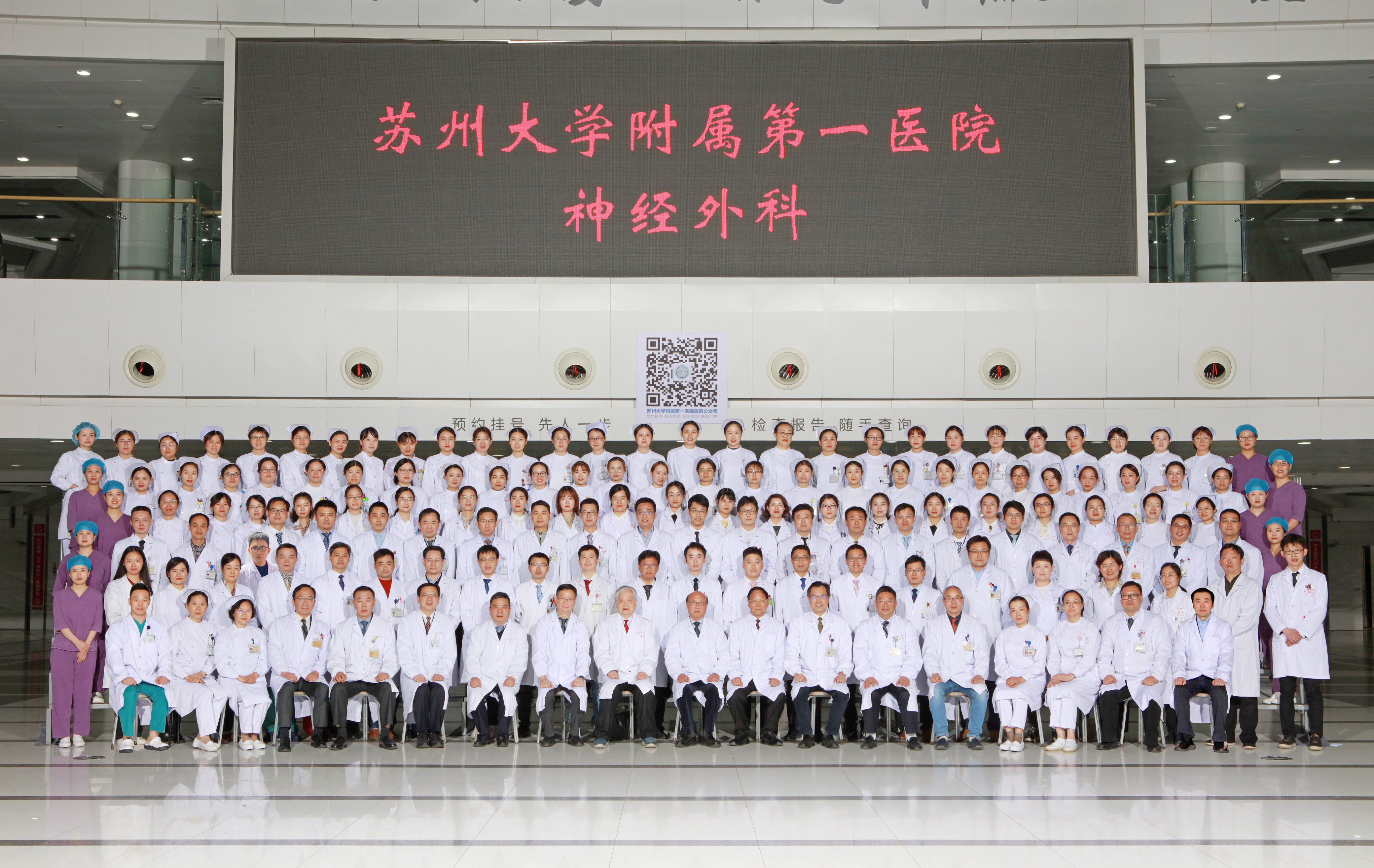 苏州大学附属第一医院神经外科是国家临床重点专科,国家神经外科专科医师培训基地,国家神经外科进修与培训基地,省神经外科临床医学中心,省神经外科医疗质量控制中心和省脑重大疾病新药转化工程中心。科室始建于1959年,是国内较早开展颅脑和脊髓手术的单位。1972年原苏州医学院院长杜子威教授从日本引进了手术显微镜等设备,促进了中国显微神经外科的发展。1981年,鲍耀东教授和杜子威教授入选首批神经外科博导(全国共5人)。2017年,科技影响力排名(STEM)居全国第6位。2018年,杜子威教授和惠国桢教授获中国神经外科终身成就奖(全国共19人)。目前神经外科设有床位176张,4个病区,年手术量3500台。学科带头人、科主任王中教授为省医学领军人才,中国医师协会神经外科分会委员,江苏省医学会神经外科分会主任委员。