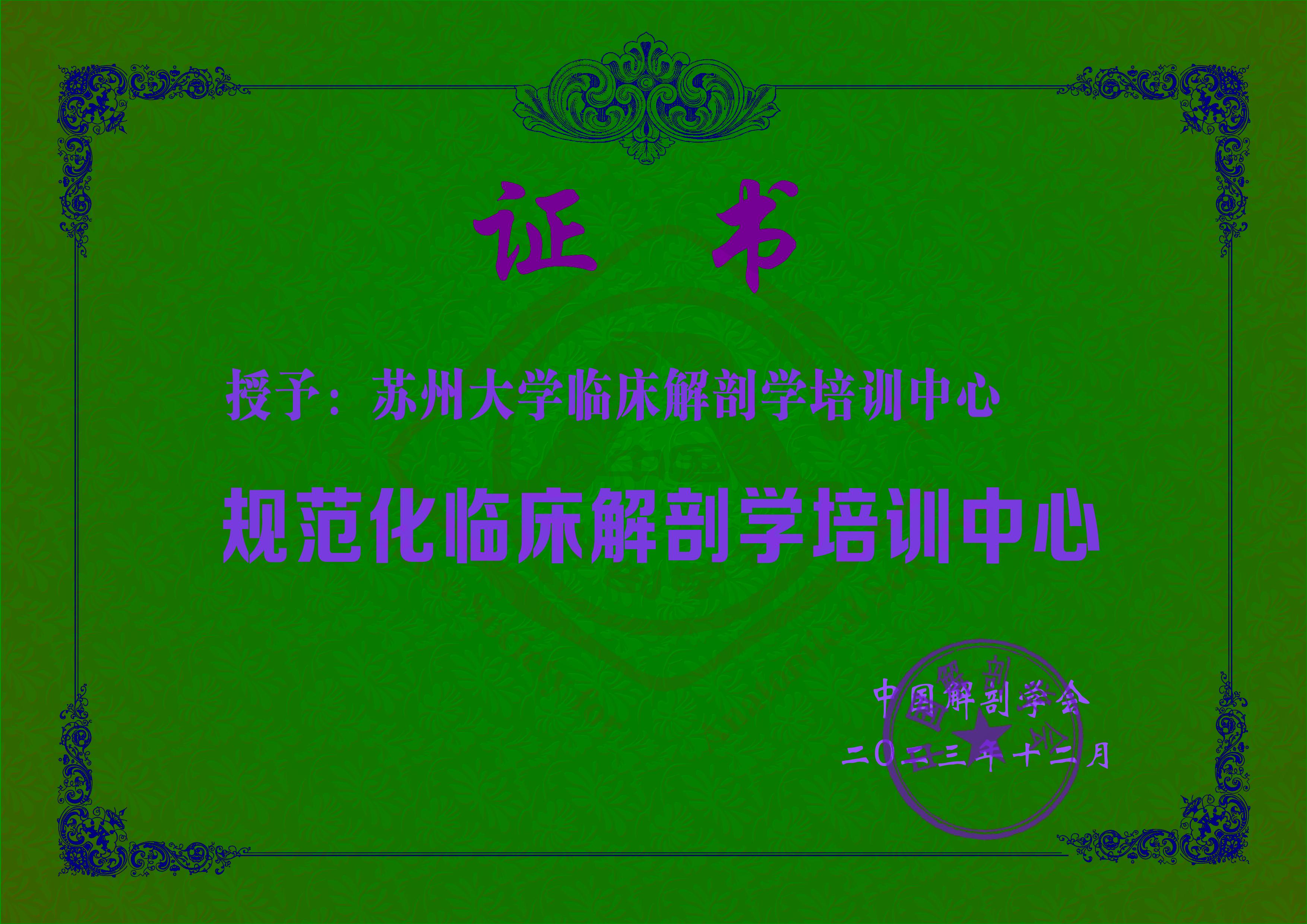 12月23日,从中国解剖学会获悉,苏州大学临床解剖学培训中心被中国解剖学会认定为“规范化临床解剖学培训中心”。这是自2023年5月15日中国解剖学会发布《规范化人体解剖技术培训中心(含临床解剖培训中心)认定实施细则》以来,全国首家获得该认定资格的单位。