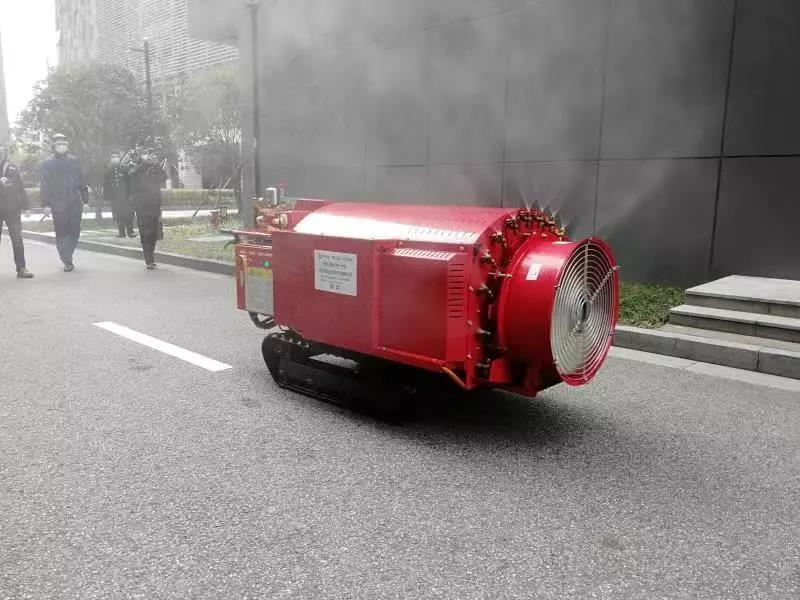 “通过远程无线操控,‘加农炮’喷射高度可达30米,特别适用于一些建筑楼宇的使用,‘风神’的喷射直径可达10-15米,在狭窄的通道和巷子内有非常好的用武之地。”