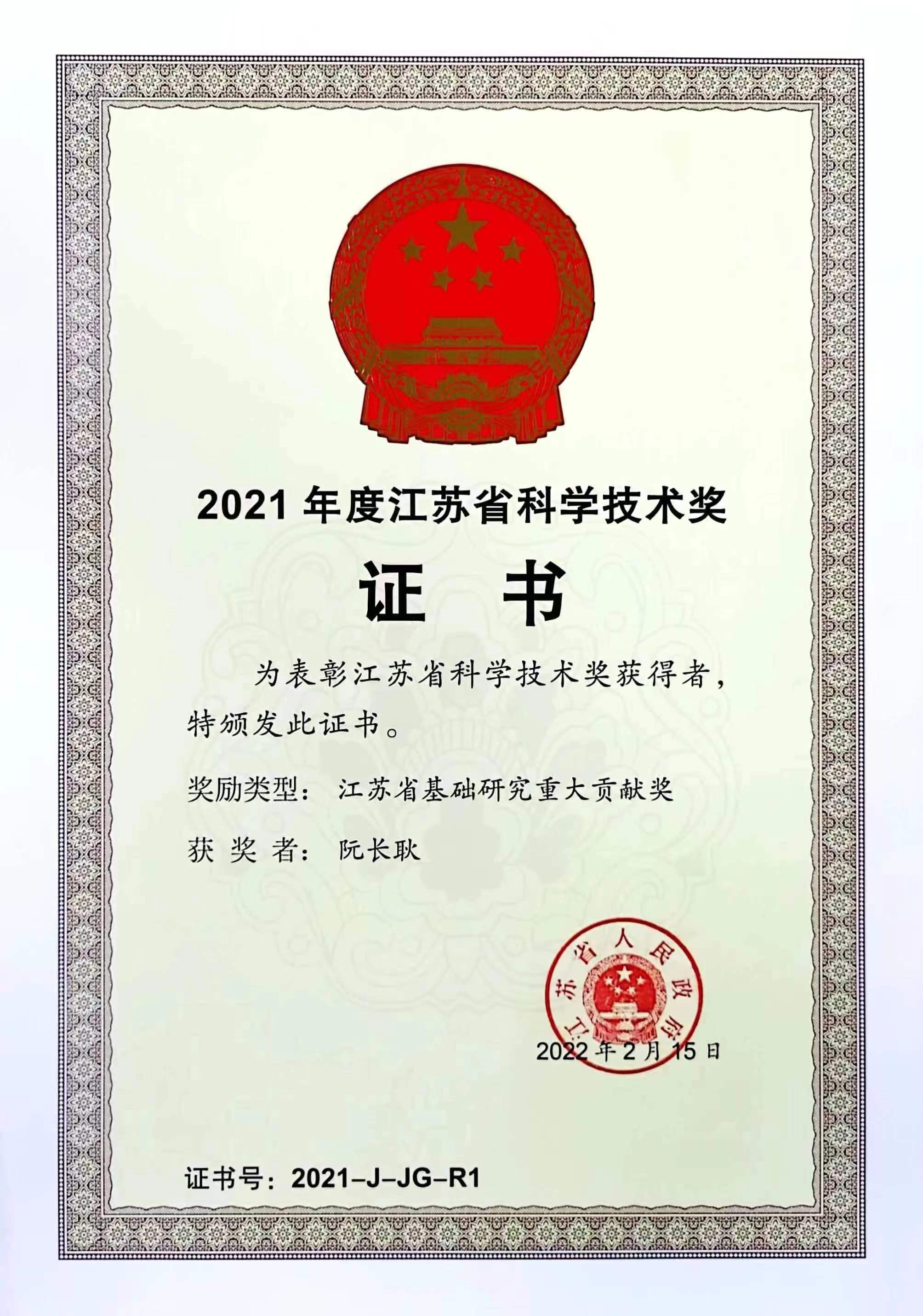 在公布的2020、2021两个年度江苏省科学技术奖励决定中,我校共获得26个江苏省科学技术奖项,其中科技项目奖25项,阮长耿院士荣获2021年度全省唯一一项江苏省基础研究重大贡献奖,这也是我校首次获得该奖项。
