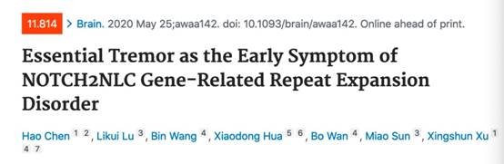 5月25日,国际著名脑科学杂志《Brain》在线发表了由苏州大学神经科学研究所徐兴顺教授团队联合苏州大学附属第一医院孙淼教授团队关于神经元核内包涵体病的重要研究成果,文章题目为“Essential tremor as the early symptom of NOTCH2NLC gene-related repeat expansion disorder”。