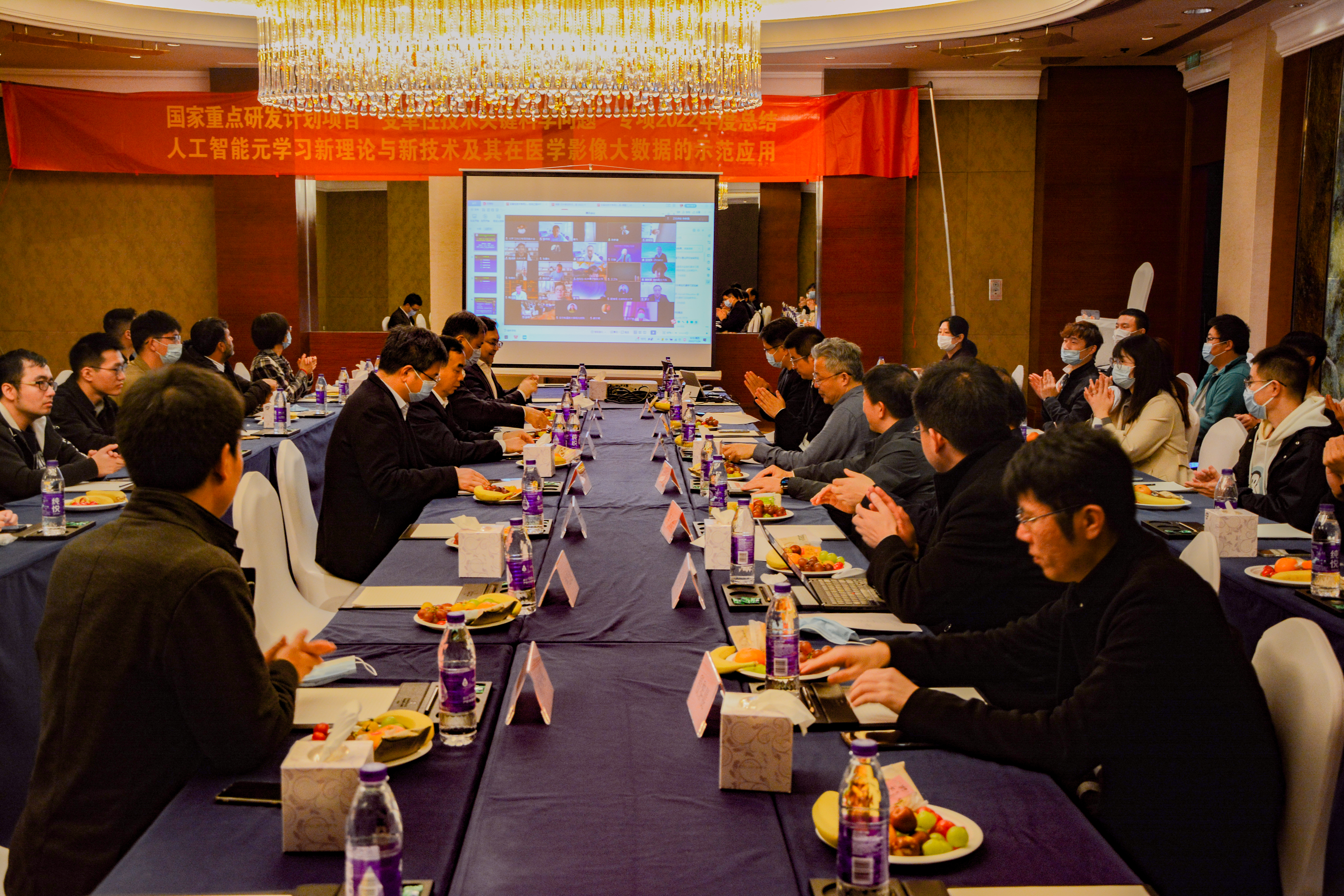 会上,张晓宏首先代表项目承担单位致辞,感谢大家对学校各方面工作的支持与帮助,并对项目的发展寄予殷切期望。他表示,后续学校将继续全力配合,保证项目的顺利进行。随后,吴培亨院士、柴之芳院士、顾宁院士分别发表致辞,预祝会议圆满成功。 陈新建作为项目负责人汇报了项目总体的年度进展。项目组围绕年度任务,从李群-贝叶斯流形元学习的理论框架研究、李群-贝叶斯流形元学习新方法研究、高效元学习自推断医学影像诊断系统三个方面稳步推进研究工作,取得了系列成果。李凡长、张志强作为课题负责人分别向与会专家汇报了本年度课题进展与研究成果等情况。 各位专家对项目的工作进展给予了充分肯定,并针对项目的后续研究工作提出了指导意见。吴培亨院士指出项目的研究内容和目标具有很大的发展意义,需努力攻克更多技术难题,进一步解决存在的关键问题。柴之芳院士表示项目面向人民身体健康,研究方向很好,目前已取得了不错的成果,对项目的未来发展寄予厚望。顾宁院士表示项目挑战性很大,同时具有较强的潜力,对理论与应用的进一步深度融合表达了深切期望。其他与会专家也对项目年度工作给予充分肯定,并对项目的下一步工作要点进行了多方位的指导,提出了切实有效的意见和建议。 此次会议的召开,标志着国家重点研发计划“变革性技术关键科学问题”重点专项“人工智能元学习新理论与新技术及其在医学影像大数据的示范应用”2022年度工作总结圆满完成。项目组将继续面向国家重大需求,深化学科交叉融合,坚持一体化科技创新,合力攻克核心关键技术,加快促进人工智能技术研究成果在智慧医疗领域的落地与转化,助力学校高质量发展,造福广大人民生命健康。