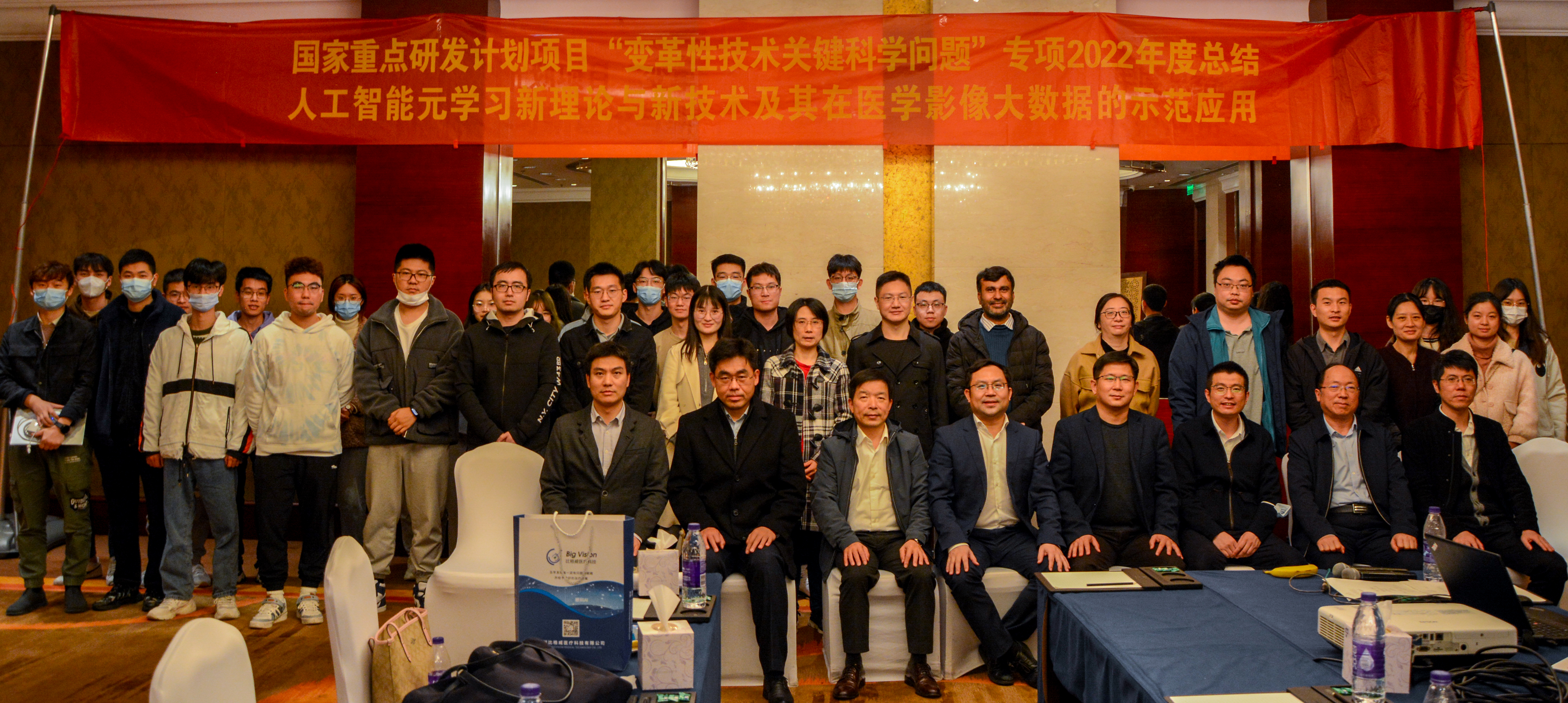 11月24日上午,我校陈新建教授团队承担的国家重点研发计划“变革性技术关键科学问题”重点专项项目“人工智能元学习新理论与新技术及其在医学影像大数据的示范应用” 2022年度总结会议在苏州顺利召开。本次会议以线下线上相结合方式举行,邀请了南京大学吴培亨院士、苏州大学柴之芳院士、南京大学顾宁院士以及北京航空航天大学田捷教授等25位领域知名专家参加。我校校长张晓宏、科学技术研究院相关负责人以及项目组苏州大学李凡长教授、南京大学张志强教授、杭州电子科技大学厉力华教授等出席了会议。项目负责人陈新建教授主持了本次会议。