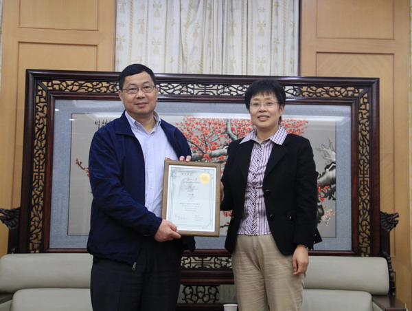 路建美副校长为李长明院士颁发了苏州大学兼职教授聘书,并为其佩戴了校徽。