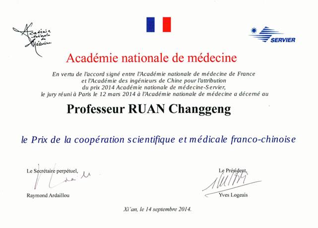 “法国医学科学院赛维雅奖”由法国医学科学院于2013年设立,每年评选一次,由法国医学科学院院士组成的委员会在法国投票评选终定,用以表彰在中国医学科学技术及管理领域有重要发现、发明,并有显著应用成效的科学家,以及为中法医学科学合作交流做出杰出贡献的科技工作者。