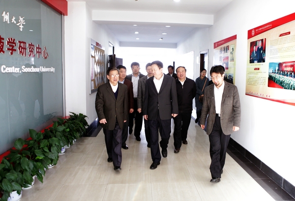 11月14日,苏州市委副书记、市长周乃翔一行莅临我校就推进名城名校深度融合发展进行调研。副市长王鸿声,市政府秘书长陈雄伟、副秘书长陆俊秀,市经济和信息化委员会主任周群信,科技局局长黄戟,卫生局局长张月林,以及我校党委书记王卓君、校长朱秀林等校领导陪同调研。