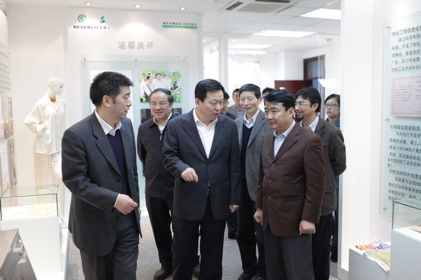 周乃翔一行先后参观了我校生物医学研究院、唐仲英血液学研究中心、现代丝绸国家工程实验室、苏州纳米科技协同创新中心等地。在生物医学研究院和唐仲英血液学研究中心,周乃翔分别听取了阮长耿院士、熊思东副校长对两所科研机构建设发展和推进情况的介绍,并走进实验仪器室,关切地询问了专家教授们的最新研究成果。