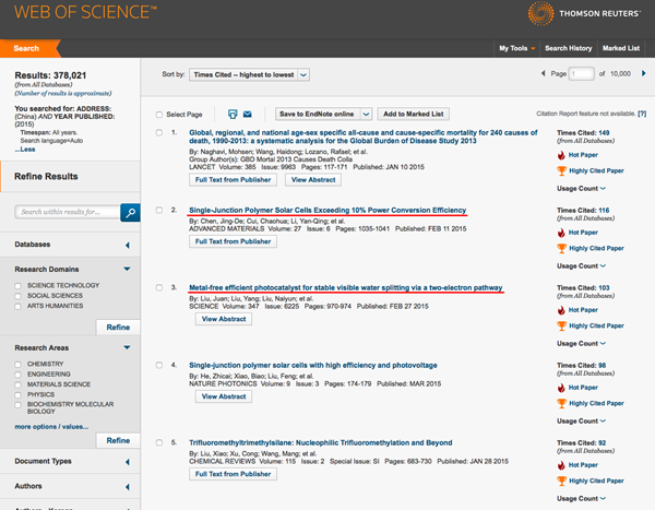 辞旧迎新之际,Web of Science数据库显示,2015年度我校FUNSOM研究院唐建新教授课题组与材化部李永舫院士合作在《Advanced Materials》期刊上发表的论文“Single-Junction Polymer Solar Cells Exceeding 10% Power Conversion Efficiency”(文章一)以及FUNSOM研究院康振辉教授课题组、李述汤院士、YeshayahuLifshitz教授合作在《Science》期刊上发表的论文“Metal-Free Efficient Photocatalyst for Stable Visible Water Splitting via a Two-Electron Pathway”(文章二)分别被引用116次与103次,这是2015年中国科研人员以中国为第一单位发表的SCI论文中,目前已被引频次最高的前两篇文章。
