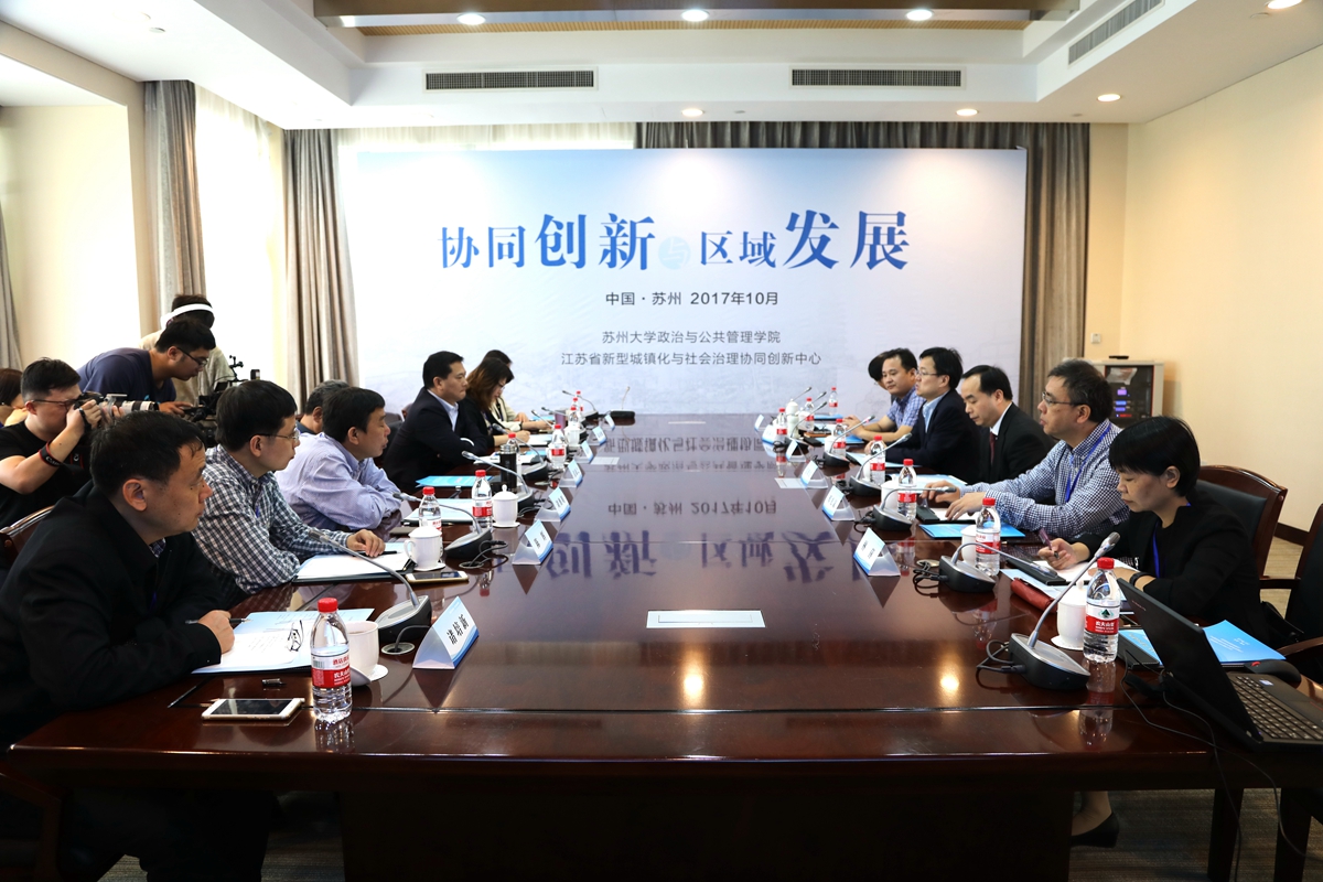 10月14日上午,由政治与公共管理学院、江苏省新型城镇化与社会治理协同创新中心主办的“聚焦区域发展、聚力协同创新——高水平协同创新中心建设研讨会”在我校举行。中国人民大学教授、南京大学特聘教授张康之,我校副校长张晓宏教授,张家港市人民政府副市长、我校人武部部长胡新华,学校相关职能部门主要负责人,以及来自中国人民大学、南京大学、南京师范大学、江南大学、南京工业大学、南京农业大学、南京审计大学、苏州大学等高校的近20位专家学者参加了会议。会议由江苏省新型城镇化与社会治理协同创新中心主任、政治与公共管理学院院长陈进华主持。
