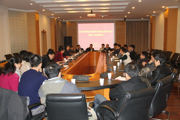 1月14日下午,我校2012年国家自然科学基金杰出青年科学基金、优秀青年科学基金项目申报人员座谈会在红楼召开。副校长路建美、科学技术与产业部科学技术处处长郁秋亚、副处长许继芳、钱福良等出席了会议,国家自然科学基金杰青、优青申报人员30余人参加了会议。会议邀请我校2011年国家自然科学基金杰出青年科学基金获得者、数学科学学院院长曹永罗教授,材料与化学化工学部主任陈红教授为申报人员做项目申报指导。会议由许继芳主持。