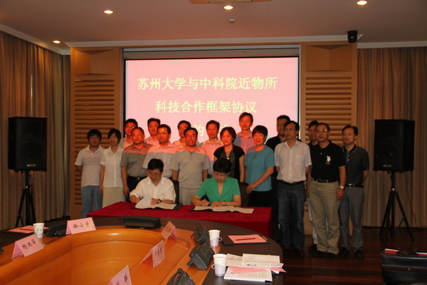 随后,路建美与肖国青签订苏州大学与中国科学院近代物理研究所科技合作框架协议。