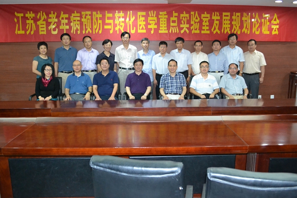 7月20日下午,江苏省老年病预防与转化医学重点实验室发展规划论证会在我校炳麟图书馆825召开。论证专家组由东南大学副校长浦跃朴教授、华中科技大学邬堂春教授、浙江大学王福俤教授、南京医科大学赵子建教授、复旦大学屈卫东教授、中国科学院王慧教授、复旦大学赵根明教授组成。江苏省教育厅科技与产业处副处长丁同玉,我校副校长路建美,科学技术处处长郁秋亚、副处长张志红,医学部书记邹学海、常务副主任黄瑞、副主任徐小乐,公共卫生学院院长张永红、副书记芮秀文、副院长徐勇及重点实验室主要学术骨干出席会议。