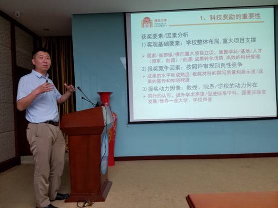 4月18日下午,科技奖励申报辅导讲座在独墅湖校区放射医学与防护学院一楼会议室举行,清华大学成果与知识产权管理办公室副主任孟宪飞作了题为“科技奖励工作交流汇报”的讲座。学校各相关单位分管科研的领导、科研秘书和拟申报2017年科技奖励的教师等60余人参加了此次讲座。讲座由科学技术研究部科学技术处副处长张志红主持。