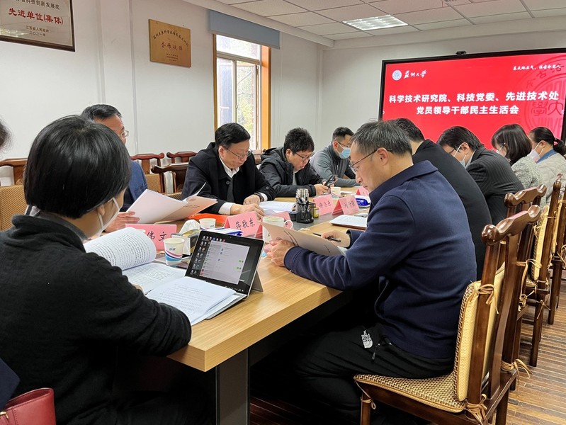 2月10日下午,科学技术研究院、科技党委、先进技术处领导班子召开2022年度党员领导干部民主生活会。会议以“全面贯彻习近平新时代中国特色社会主义思想,深刻领悟‘两个确立’的决定性意义,增强‘四个意识’、坚定‘四个自信’、做到‘两个维护’,团结带领党员干部群众以奋发有为的精神贯彻落实党的二十大作出的重大决策部署”为主题,联系实际工作,总结成绩,查摆不足,严肃认真开展批评和自我批评。科学技术研究院、科技党委、先进技术处领导班子参加会议,校第八督导组到会指导。会议由科技党委书记蒋敬东主持。